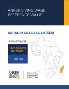 Reference ValueLiving Wage Reference Value for Urban Madagasar Country: MadagascarLiving WageAr.707,181Malagasy ariary per Month= $US 158 per Month2025 EstimateFull Report and Supporting MaterialsUpdate Report2025 Living Wage Reference Value Update Report for Urban MadagascarDate: December 04 2025View EnglishReference Value2024 Living Wage Reference Value Report for Urban MadagascarView English