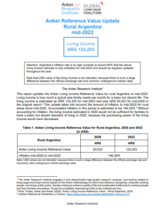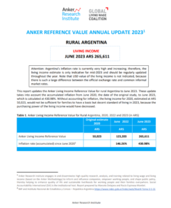 Reference ValueLiving Income Reference Value – Rural Argentina Country: ArgentinaLiving IncomeARS1,375,833Argentine Pesos per Month2025 EstimateFull Report and Supporting MaterialsReference Value2025 Living Income Reference Value – Rural ArgentinaDate: October 16 2025View EnglishUpdate Report2024 Living Income Reference Value – Rural ArgentinaDate: June 01 2024View EnglishUpdate Report2023 Living Income Reference Value – Rural ArgentinaView EnglishUpdate Report2022 Living Income Reference Value – Rural ArgentinaView EnglishReference Value2020 Living Income Reference Value – Rural ArgentinaView English