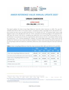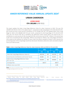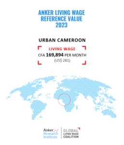 Reference ValueLiving Wage Reference Value for Urban Cameroon Country: CameroonLiving WageCFA196,280Cameroonian Central African CFA franc per Month= $US 345 per Month2025 EstimateFull Report and Supporting MaterialsUpdate Report2025 Living Wage Reference Value - Urban CameroonDate: August 24 2025View EnglishUpdate Report2024 Living Wage Reference Value - Urban CameroonDate: June 01 2024View EnglishReference Value2023 Living Wage Reference Value - Urban CameroonDate: July 05 2023View English