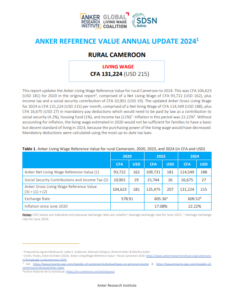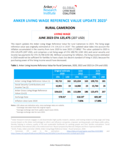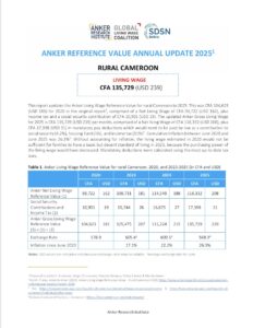 Reference ValueLiving Wage Reference Value – Rural Cameroon Country: CameroonLiving WageCFA135,729Cameroonian Central African CFA franc per Month= $US 239 per Month2025 EstimateFull Report and Supporting MaterialsUpdate Report2025 Living Wage Reference Value Update – Rural CameroonDate: August 24 2025View EnglishUpdate Report2024 Living Wage Reference Value Update – Rural CameroonDate: June 01 2024View EnglishUpdate Report2023 Living Wage Reference Value Update – Rural CameroonView EnglishUpdate Report2022 Living Wage Reference Value Update – Rural CameroonView EnglishReference Value2020 Living Wage Reference Value – Rural CameroonView English