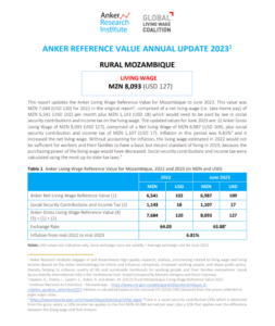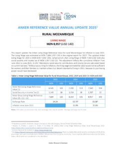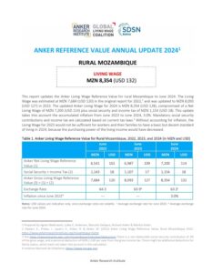 Reference ValueLiving Wage Reference Value – Rural Mozambique Country: MozambiqueLiving WageMT8,957Mozambican meticals per Month= $US 140 per Month2025 EstimateFull Report and Supporting MaterialsUpdate Report2025 Living Wage Reference Value Update – Rural MozambiqueDate: December 07 2025View EnglishUpdate Report2024 Living Wage Reference Value Update – Rural MozambiqueDate: June 01 2024View EnglishUpdate Report2023 Living Wage Reference Value Update – Rural MozambiqueView EnglishReference Value2022 Living Wage Reference Value – Rural MozambiqueView English