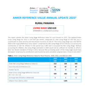 Reference ValueLiving Wage Reference Value – Rural Panama Country: PanamaLiving WageUSD615US Dollar per Month= $US 615 per Month2025 EstimateFull Report and Supporting MaterialsUpdate Report2025 Living Wage Reference Value Update – Rural PanamaDate: September 02 2025View EnglishUpdate Report2024 Living Wage Reference Value Update – Rural PanamaDate: June 01 2024View EnglishUpdate Report2023 Living Wage Reference Value Update – Rural PanamaDownload EnglishUpdate Report2022 Living Wage Reference Value Update – Rural PanamaDownload EnglishUpdate Report2021 Living Wage Reference Value Update – Rural PanamaDownload EnglishReference Value2020 Living Wage Reference Value – Rural PanamaDownload EnglishReference Value2020 Valor de Referencia Anker para el Salario Vital en el Panamá ruralDownload Spanish