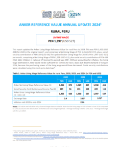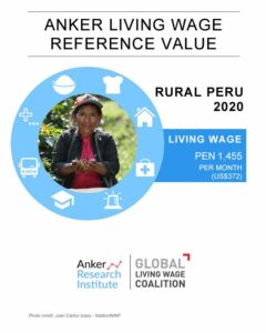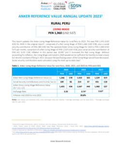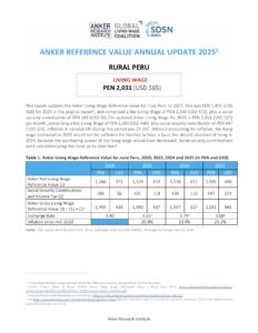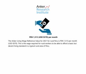 Reference ValueLiving Wage Reference Value – Rural Peru Country: PeruLiving WagePEN 2,031Peruvian Sol per Month= $US 565 per Month2025 EstimateFull Report and Supporting MaterialsUpdate Report2024 Living Wage Reference Value – Rural PeruDate: September 07 2025View EnglishUpdate Report2024 Living Wage Reference Value – Rural PeruDate: June 01 2024View EnglishUpdate Report2023 Living Wage Reference Value – Rural PeruDate: July 05 2023Download EnglishReference Value2022 Living Wage Reference Value – PeruDownload EnglishReference Value2021 Living Wage Reference Value Update – PeruDownload EnglishReference Value2020 Living Wage Reference Value – Rural PeruDownload EnglishReference Value2020 Valor de Referencia Anker para el Salario Vital – Perú RuralDownload Spanish