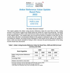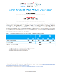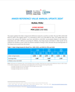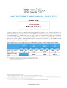 Reference ValueLiving Income Reference Value – Rural Peru Country: PeruLiving IncomePEN 2,566Peruvian Sol per Month= $US 713 per Month2025 EstimateFull Report and Supporting MaterialsUpdate Report2025 Living Income Reference Value Update – Rural PeruDate: September 07 2025View EnglishUpdate Report2024 Living Income Reference Value Update – Rural PeruDate: June 01 2024View EnglishUpdate Report2023 Living Income Reference Value Update – Rural PeruDate: July 05 2023Download EnglishUpdate Report2022 Living Income Reference Value Update – Rural PeruDownload EnglishReference Value2020 Living Income Reference Value – Rural PeruDownload EnglishReference ValueValor de Referencia Anker para el Ingreso Digno 2020 – PERÚ RuralDownload Spanish
