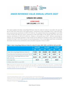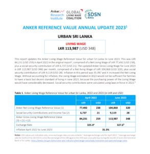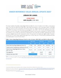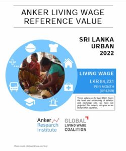 Reference ValueLiving Wage Reference Value — Urban Sri Lanka Country: Sri LankaLiving WageLKR115,291Sri Lankan Rupees per Month= $US 385 per Month2025 EstimateFull Report and Supporting MaterialsUpdate Report2025 Living Wage Reference Value – Urban Sri LankaDate: November 28 2025View EnglishUpdate Report2024 Living Wage Reference Value – Urban Sri LankaDate: June 01 2024View EnglishUpdate Report2023 Living Wage Reference Value – Urban Sri LankaDownload EnglishReference Value2022 Living Wage Reference Value – Urban Sri LankaView English