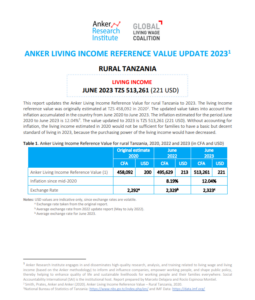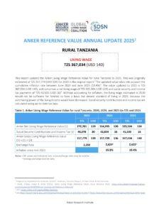 Reference ValueLiving Income Reference Value – Rural Tanzania Country: TanzaniaLiving IncomeTZS546,793Tanzanian Shillings per Month= $US 209 per Month2025 EstimateFull Report and Supporting MaterialsUpdate Report2025 Living Income Reference Value – Rural TanzaniaDate: September 16 2025View EnglishUpdate Report2024 Living Income Reference Value – Rural TanzaniaDate: June 01 2024View EnglishUpdate Report2023 Living Income Reference Value – Rural TanzaniaDate: July 05 2023Download EnglishUpdate Report2022 Living Income Reference Value – Rural TanzaniaDownload EnglishReference Value2020 Living Income Reference Value – Rural TanzaniaDownload English