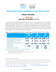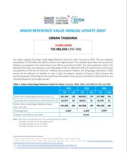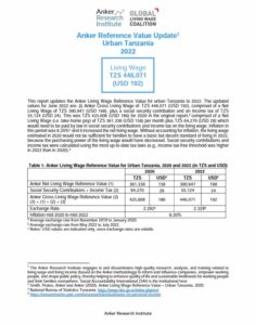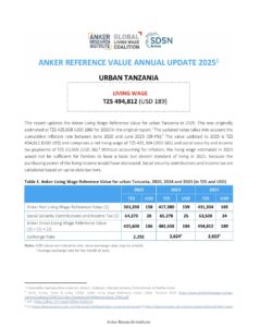Reference ValueLiving Wage Reference Value – Urban Tanzania Country: TanzaniaLiving WageTZS494,812Tanzanian Shillings per Month= $US 189 per Month2025 EstimateFull Report and Supporting MaterialsUpdate Report2025 Living Wage Reference Value Update – Urban TanzaniaDate: September 16 2025View EnglishUpdate Report2024 Living Wage Reference Value Update – Urban TanzaniaDate: June 01 2024View EnglishUpdate Report2023 Living Wage Reference Value Update – Urban TanzaniaDownload EnglishUpdate Report2022 Living Wage Reference Value Update – Urban TanzaniaDownload EnglishReference Value2020 Living Wage Reference Value – Urban TanzaniaDownload EnglishDownload
