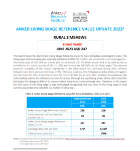 Reference ValueLiving Wage Reference Value — Rural Zimbabwe Country: ZimbabweLiving Wage$309Zimbabwean Dollars (US Dollars) per Month= $US 309 per Month2025 EstimateFull Report and Supporting MaterialsUpdate Report2025 Living Wage Reference Value – Rural ZimbabweDate: September 20 2025View EnglishUpdate Report2024 Living Wage Reference Value – Rural ZimbabweDate: June 01 2024View EnglishUpdate Report2023 Living Wage Reference Value – Rural ZimbabweDownload EnglishReference Value2022 Living Wage Reference Value – Rural ZimbabweDownload English